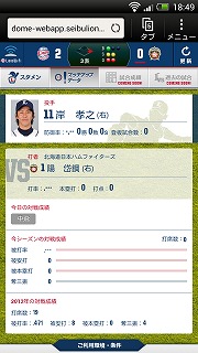 進行中の試合の、投手と打者の成績を確認できます。