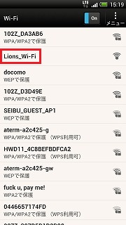 - ネットワークの一覧が表示されるので、「Lions Wi-Fi」をタップします。