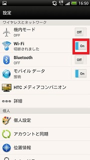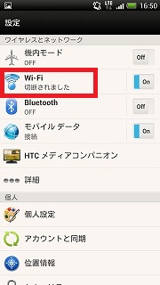 - 「Wi-Fi」が「Off」になっている場合は、「On」に切り替えます。